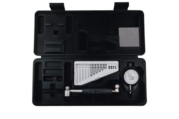 In a box with bore gauge 511-762, dial indicator 2109AB-10, plastic cover for indicator 21DZA000, 6 anvils, 4 interchangeable washer |