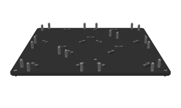 4-кратная загрузочная приемная плита для КИМ MiSTAR для ручной системы загрузки eco-fix PRS С кронштейнами позиционирования поддонов для 4 поддонов. Один поддон также может быть расположен в центре приемной плиты для обеспечения повторяемого позиционирования базовой плиты на машине.