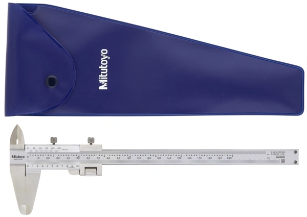 Штангенциркуль Mitutoyo с двойной шкалой, оснащенный колесиком точной регулировки и стандартными внешними и внутренними губками. Конструкция из закаленной нержавеющей стали с легко читаемыми, сатинированными хромированными шкалами.